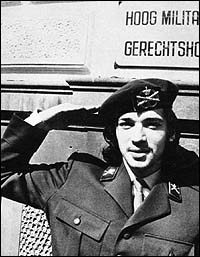 Rinus Wehrmann, soldaat bij de Koninklijke Landmacht, wilde geen kort amerikaans. Hij liet zijn haar lang en in 1971 betekende dat een gevangenisstraf van twee jaar. De toen 20-jarige Wehrmann nam dit niet, evenmin als diverse protestgroepen die vurig voor een vrije haardracht pleitten. Drie weken van demonstraties volgden op Wehrmanns veroordeling. Met resultaat. Op 16 juni 1971 besloot minister Den Toom de militaire haardracht op korte termijn vrij te laten en Wehrmann kwam diezelfde dag vrij. Hij had drie maanden in voorarrest gezeten. Hij moest nog wel voor het Hoog Militair Gerechtshof verschijnen waar zijn straf van twee jaar werd omgezet in twaalf dagen zwaar arrest. Rinus' haar mocht lang blijven, zij het opgeborgen in een netje. [evdz] terug naar 1971