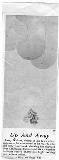 Larry Walters uit Los Angeles besluit op een dag dat hij wil vliegen. Hij koopt in een lokale dumpzaak verscheidene weerballonen en een tank helium. De ballonen maakt hij vast aan zijn tuinstoel, zijn tuinstoel aan zijn jeep en begint de ballonnen te vullen. Hij smeert een paar boterhammen, pakt zijn geweer, klimt op de stoel en hakt het touw tussen de stoel en zijn jeep los. Walters had berekend dat hij circa tien meter boven zijn tuin zou zweven en met zijn geweer telkens een ballon kon stuk schieten om zo stapsgewijs te dalen. In plaats van tien meter schiet Walters echter als een kogel vijf kilometer de lucht in. Op die hoogte durft hij de ballonen niet meer stuk te schieten. De situatie wordt nog penibeler als hij door de wind in de buurt komt van de landingsroute van het internationale vliegveld in Los Angeles. Een piloot merkt Larry op en neemt contact op met het vliegveld. Na 14 uur, hij zweeft dan inmiddels boven de oceaan, wordt Walters opgepikt door een reddingshelicopter.